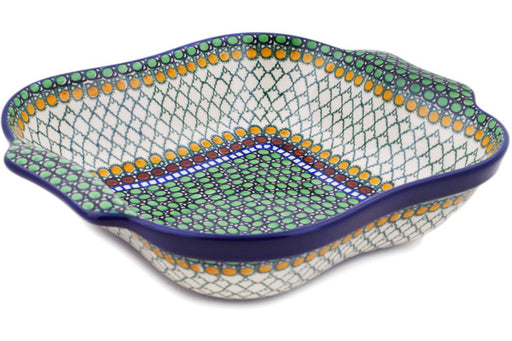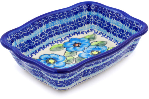 This Polish Pottery 9" Rectangular Baker with Handles Ring Of Flowers Theme was handmade and handpainted by the Ceramika Bona factory in Boleslawie...