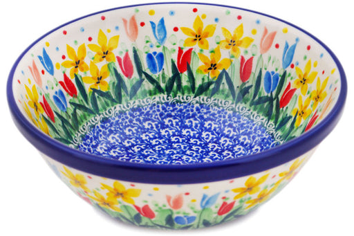 This Polish Pottery 7" Bowl Ring Of Flowers Theme was handmade and handpainted by the Ceramika Bona factory in Boleslawiec, Poland by skilled artis...