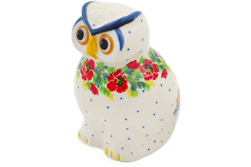 This Polish Pottery 5" Owl Figurine Red Poppy Chain Theme was handmade and handpainted by the Ceramika Artystyczna factory in Boleslawiec, Poland b...