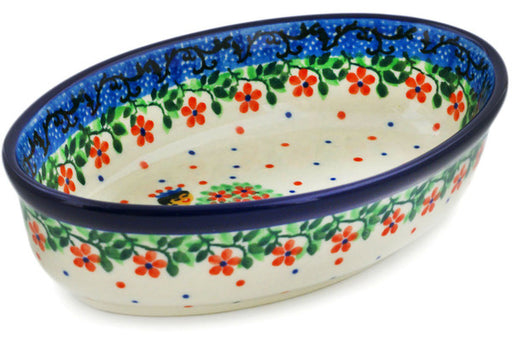 This Polish Pottery 6" Condiment Dish Bunches Of Beauty Theme was handmade and handpainted by the Ceramika Artystyczna factory in Boleslawiec, Pola...