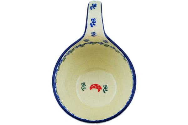 Polish Pottery Bowl with Loop-Handle 16 oz Dancing Gnome Theme