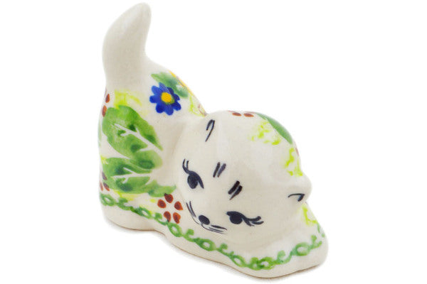 This Polish Pottery 2" Cat Figurine Sunflower Yellow Petal Bliss Theme was handmade and handpainted by the Ceramika Bona factory in Boleslawiec, Poland by skilled artisans according to old traditional methods. This is a Polish pottery Signature Unikat, which means that it has been hand painted with both sponges and brushes and it is signed by the artist who painted it. Unikat pieces are the most intricate works of art. Larger Unikat items take hours of very careful work to finish. Polish Pottery is superb quality stoneware. Oven, microwave, dishwasher, and freezer safe. Lead and Cadmium free paints and glazes. Resists chips and breakage. Individually handmade and hand painted. It is part of the Sunflower Yellow Petal Bliss Collection.