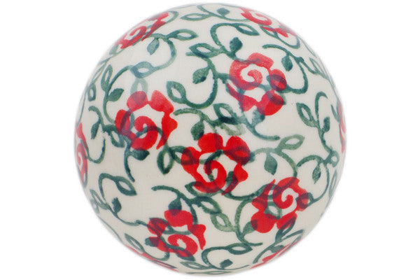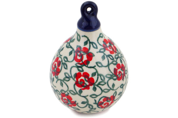 Polish Pottery Christmas Ball Ornament 4" Rose Vines Theme UNIKAT