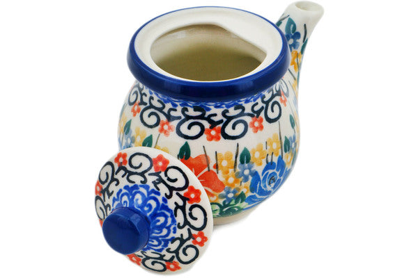 This Polish Pottery 5 oz Creamer with Lid Golden Daisies Theme was handmade and handpainted by the Ceramika Artystyczna factory in Boleslawiec, Poland by skilled artisans according to old traditional methods. This is a Polish pottery Signature Unikat, which means that it has been hand painted with both sponges and brushes and it is signed by the artist who painted it. Unikat pieces are the most intricate works of art. Larger Unikat items take hours of very careful work to finish. Polish Pottery is superb quality stoneware. Oven, microwave, dishwasher, and freezer safe. Lead and Cadmium free paints and glazes. Resists chips and breakage. Individually handmade and hand painted. It is part of the Golden Daisies Collection.