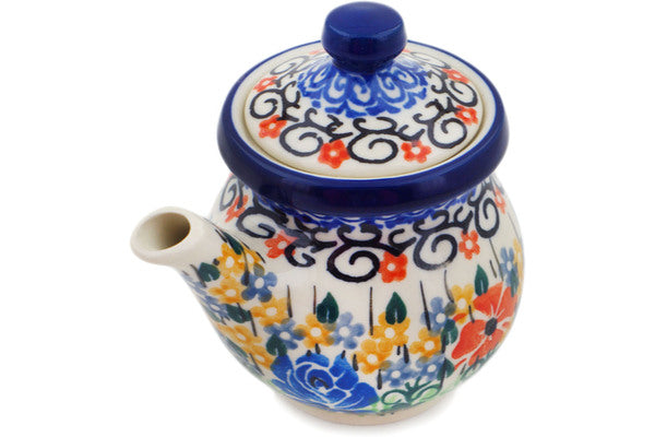 Polish Pottery Creamer with Lid 5 oz Golden Daisies Theme UNIKAT
