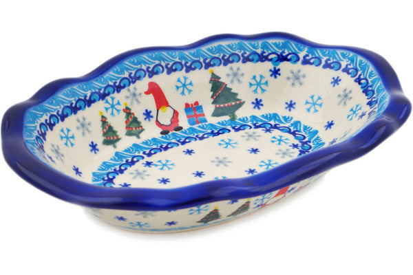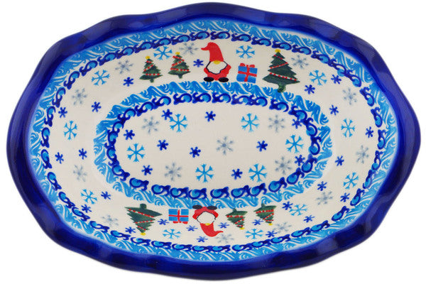 This Polish Pottery 11" Oval Bowl Winter Gnome Theme was handmade and handpainted by the Ceramika Bona factory in Boleslawiec, Poland by skilled artisans according to old traditional methods. Polish Pottery is superb quality stoneware. Oven, microwave, dishwasher, and freezer safe. Lead and Cadmium free paints and glazes. Resists chips and breakage. Individually handmade and hand painted. It is part of the Winter Gnome Collection.