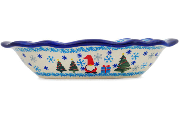 Polish Pottery Oval Bowl 11" Winter Gnome Theme