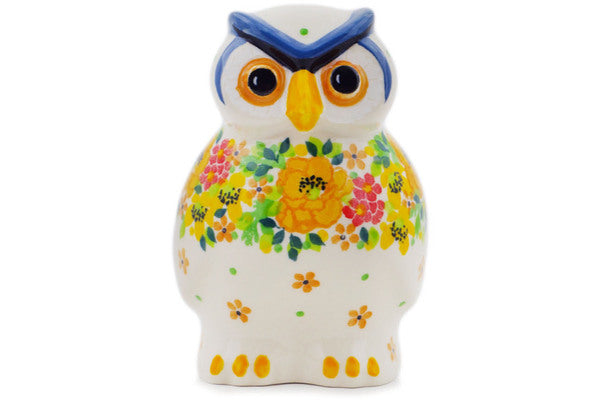This Polish Pottery 5" Owl Figurine Bright Spring Theme was handmade and handpainted by the Ceramika Artystyczna factory in Boleslawiec, Poland by skilled artisans according to old traditional methods. This is a Polish pottery Signature Unikat, which means that it has been hand painted with both sponges and brushes and it is signed by the artist who painted it. Unikat pieces are the most intricate works of art. Larger Unikat items take hours of very careful work to finish. Polish Pottery is superb quality stoneware. Oven, microwave, dishwasher, and freezer safe. Lead and Cadmium free paints and glazes. Resists chips and breakage. Individually handmade and hand painted. It is part of the Bright Spring Collection.