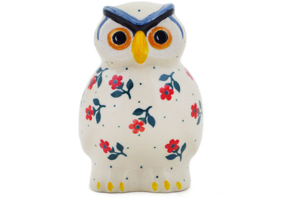 This Polish Pottery 5" Owl Figurine Flowering Scarlet Flax Theme was handmade and handpainted by the Ceramika Artystyczna factory in Boleslawiec, Poland by skilled artisans according to old traditional methods. Polish Pottery is superb quality stoneware. Oven, microwave, dishwasher, and freezer safe. Lead and Cadmium free paints and glazes. Resists chips and breakage. Individually handmade and hand painted. It is part of the Flowering Scarlet Flax Collection.