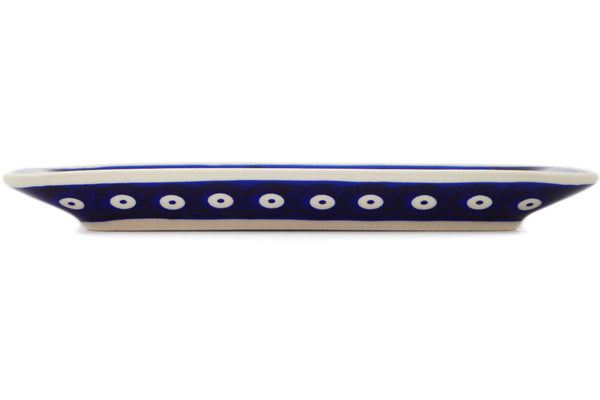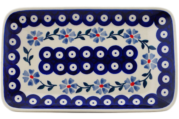 This Polish Pottery 8" Platter Peacock Forget-Me-Not Theme was handmade and handpainted by the Manufaktura factory in Boleslawiec, Poland by skilled artisans according to old traditional methods. Polish Pottery is superb quality stoneware. Oven, microwave, dishwasher, and freezer safe. Lead and Cadmium free paints and glazes. Resists chips and breakage. Individually handmade and hand painted. It is part of the Peacock Forget-Me-Not Collection.