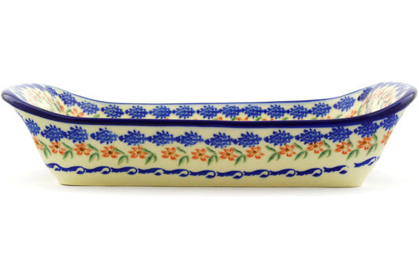 This Polish Pottery 11" Platter with Handles Fanciful Ladybug Theme was handmade and handpainted by the Ceramika Bona factory in Boleslawiec, Poland by skilled artisans according to old traditional methods. Polish Pottery is superb quality stoneware. Oven, microwave, dishwasher, and freezer safe. Lead and Cadmium free paints and glazes. Resists chips and breakage. Individually handmade and hand painted. It is part of the Fanciful Ladybug Collection.