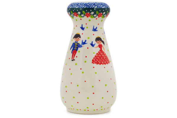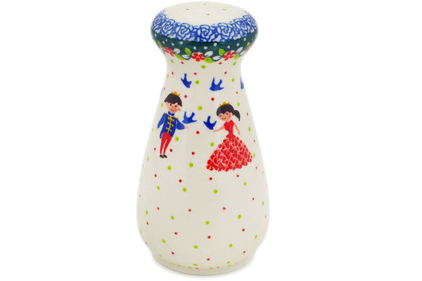 This Polish Pottery 6" Salt Shaker Bird Prince And Princess Theme was handmade and handpainted by the Ceramika Artystyczna factory in Boleslawiec, Poland by skilled artisans according to old traditional methods. This is a Polish pottery Signature Unikat, which means that it has been hand painted with both sponges and brushes and it is signed by the artist who painted it. Unikat pieces are the most intricate works of art. Larger Unikat items take hours of very careful work to finish. Polish Pottery is superb quality stoneware. Oven, microwave, dishwasher, and freezer safe. Lead and Cadmium free paints and glazes. Resists chips and breakage. Individually handmade and hand painted. It is part of the Bird Prince And Princess Collection.