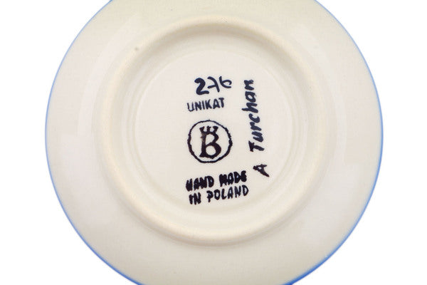 This Polish Pottery 5" Saucer Elegant Garland Theme was handmade and handpainted by the Ceramika Bona factory in Boleslawiec, Poland by skilled artisans according to old traditional methods. Polish Pottery is superb quality stoneware. Oven, microwave, dishwasher, and freezer safe. Lead and Cadmium free paints and glazes. Resists chips and breakage. Individually handmade and hand painted. It is part of the Elegant Garland Collection.