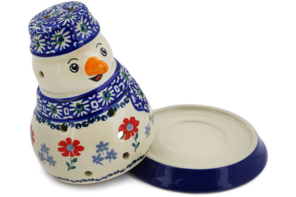 This Polish Pottery 5" Snowman Candle Holder Full Blossom Theme was handmade and handpainted by the Manufaktura factory in Boleslawiec, Poland by skilled artisans according to old traditional methods. Polish Pottery is superb quality stoneware. Oven, microwave, dishwasher, and freezer safe. Lead and Cadmium free paints and glazes. Resists chips and breakage. Individually handmade and hand painted. It is part of the Full Blossom Collection.