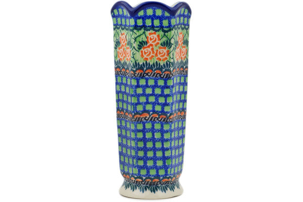 This Polish Pottery 9" Vase Red Impatiens Theme was handmade and handpainted by the Ceramika Artystyczna factory in Boleslawiec, Poland by skilled artisans according to old traditional methods. This is a Polish pottery Signature Unikat, which means that it has been hand painted with both sponges and brushes and it is signed by the artist who painted it. Unikat pieces are the most intricate works of art. Larger Unikat items take hours of very careful work to finish. Polish Pottery is superb quality stoneware. Oven, microwave, dishwasher, and freezer safe. Lead and Cadmium free paints and glazes. Resists chips and breakage. Individually handmade and hand painted. It is part of the Red Impatiens Collection.